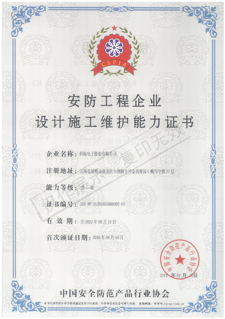 安防工程企業設計施工維護能力證書