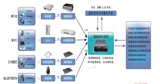物聯網包含三個方面的內容:全面感知、可靠傳遞和智能處理。對應在醫療領域,也就是對醫療對象的感知,對流程交互引擎的構架,以及對標準化醫療流程的管理。醫療本身就是對過程的關注,物聯網則能實現對象和流程的綁定,從而實現對象、行為流程的全過程標準化處理,以達到提高醫療安全和醫療質量的目標。